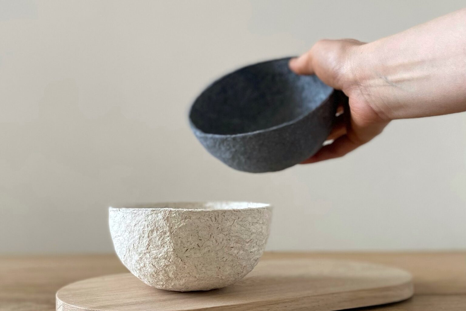 Die Schalen werden aus der Form gelöst und finden ihren Platz auf einem stilvollen Holzbrettchen Deiner Wahl – entweder aus naturbelassener Eiche oder Nussbaum. So entsteht ein ganz persönlicher Erinnerungsort, ein kleiner Altar, den Du ganz nach Deinen Vorstellungen gestalten kannst. Kleinobjekte wie Pulp-Kügelchen und Erinnerungsschmuck können finalisiert werden. Wir schließen mit einer kleinen gemeinsamen Präsentation ab.